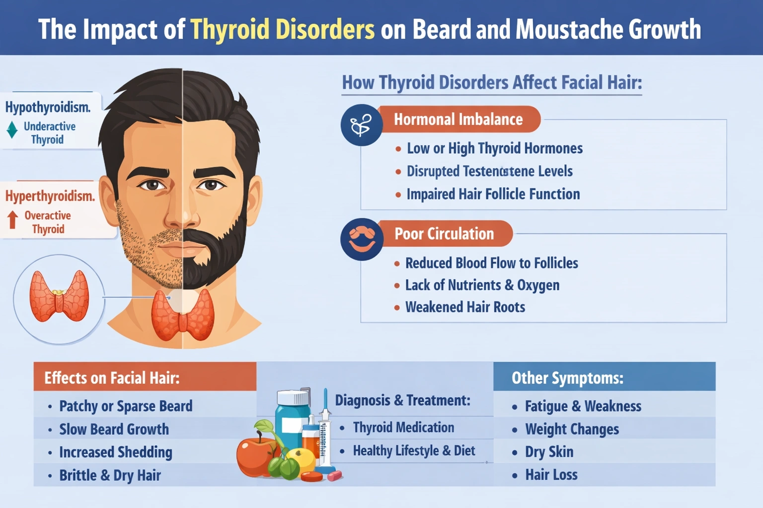 While most men blame genetics or age, the real culprit might be sitting in your neck: your thyroid gland. Understanding the impact of thyroid disorders on beard and moustache growth is the first step to regaining the full, healthy facial hair you deserve.